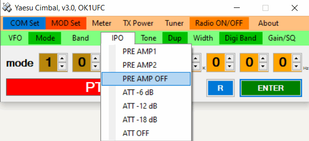 (obr. vpravo), ze kterých nastavíme IPO, atenuátor, výkon ...