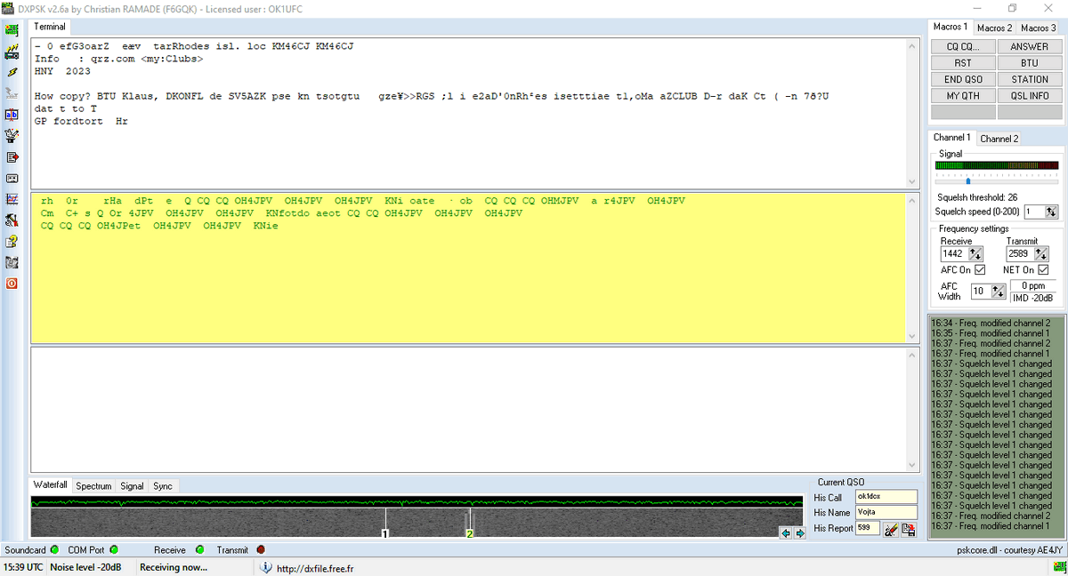 Některé programy jsou prostě boží. Za takový považuji například DXPSK. Stáhnete ho z internetu, napíšete svou značku, jméno, lokátor, necháte vygenerovat makra, nastavíte klíčování PTT přes port COM a jedete.