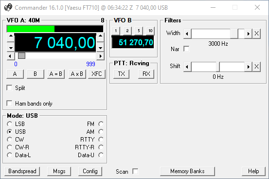 rádia FT710 z obrazovky PC. Neobsahuje žádné zbytečnosti navíc.