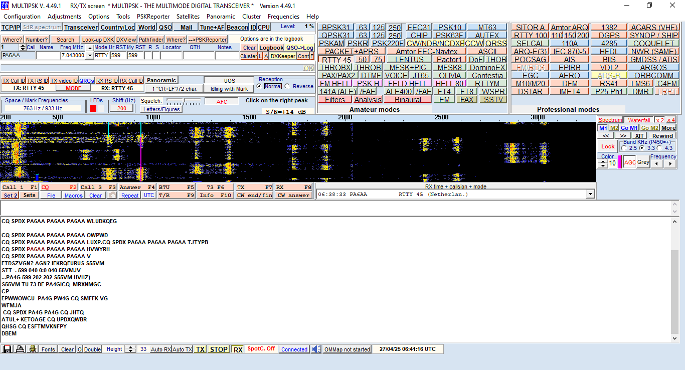 modrým nápisem Connected. A to je vše. MultiPSK je propojen přes