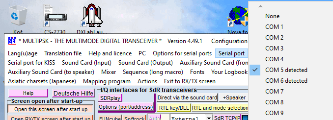 COM6. Pro klíčování PTT mi funguje pouze COM5.
