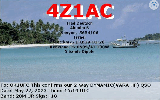 pouze jedno zkušební spojení s 4Z1AC, protože zrovna dával výzvu na 14