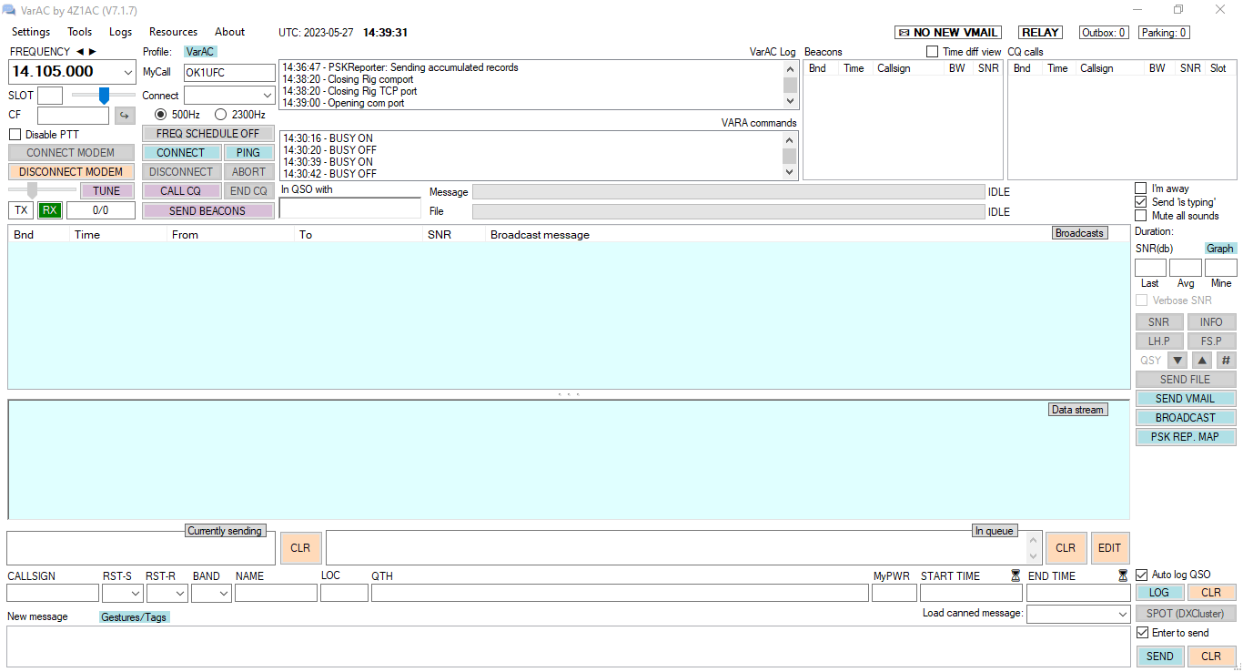 přenos informací na KV používá SW modemu VARA HF. Transceiver Yaesu