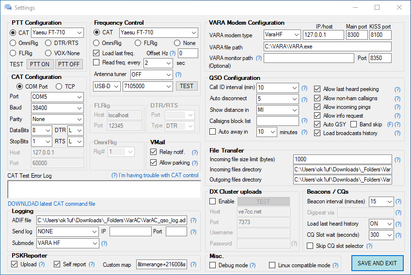 nainstaluje modem VARA HF a vyzve nás k vyplnění základních údajů o