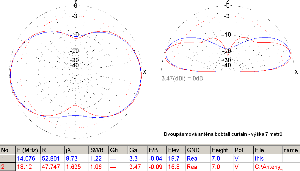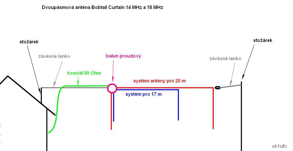 Anténu Bobtail Curtain jsem již na svých stránkách také popsal, s různými úvahami a experimenty. Anténa ve dvouprvkové verzi, označovaná často jako half square, patří k mým velice oblíbeným anténám díky své jednoduchosti, požadavku na nepříliš vysoké stožárky a konečně zisk cca 2.5 dBd vůči vertikálu není zanedbatelný. Protože se mi letos zdálo, že podmínky už nejsou takové, jako v roce loňském, stvořil jsem narychlo malou experimentální dvoupásmovou BC anténu pro pásma 14 a 28 MHz z žebříčku PCV-570-84: