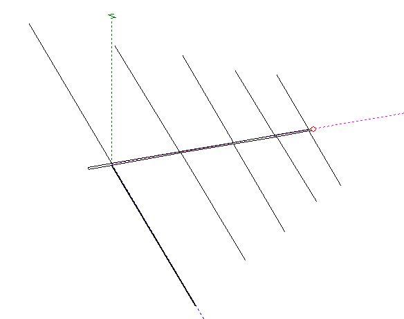 konstrukční provedení fázovacího vedení: robustní svařované hliníkové ráhno se zavařenými pouzdry prvků (konstrukce vychází z 8 elementové LPDA ok1ufc MK4)