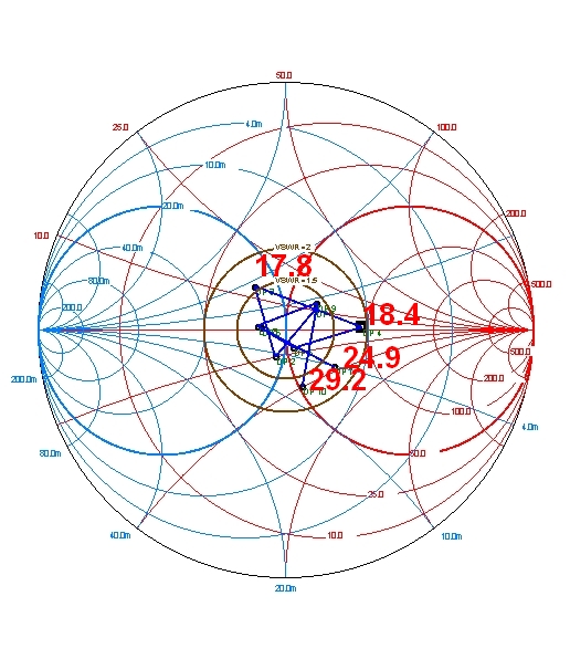Smithův diagram, jen amatérská pásma, konkrétní montáž MK2: