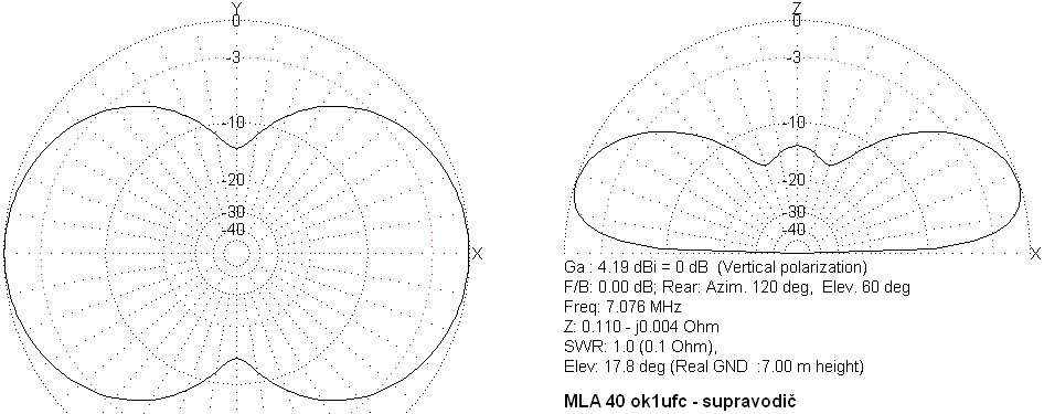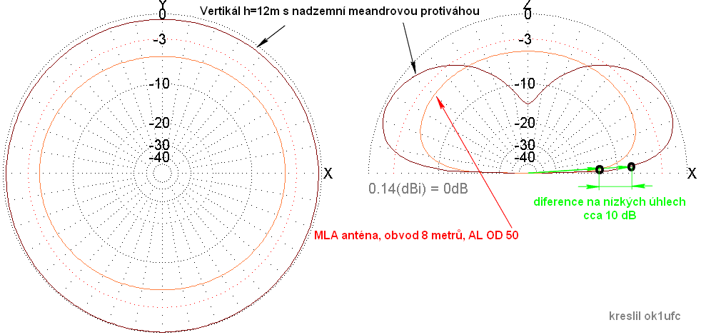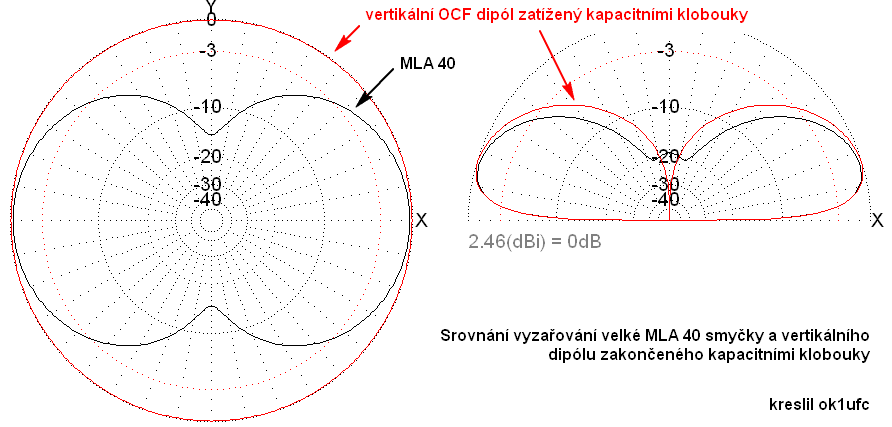 ve vertikální rovině vyzařuje téměř stejně, jako OCF dipól ve vertikální rovině vyzařuje téměř stejně, jako MLA smyčka