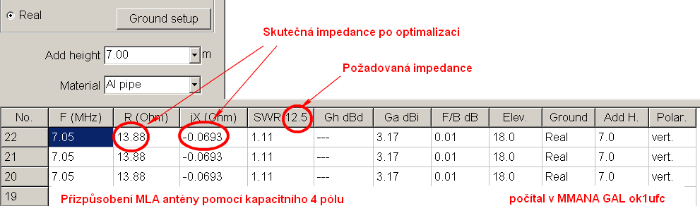 3. Mým cílem bylo popsat jednu z jednoduchých metod základního návrhu MLA pomocí software MMANA a ukázat, co všechno lze řešit. Tj. vyzařovací odpory, přizpůsobení, vyzařování v konkrétních výškách, geometrické rozměry, polohy napájecích bodů a polohu (polohy) a hodnotu zatěžovacího kondenzátoru. To, co nelze v MMANA řešit, je konstrukce feritového transformátoru. Ten však bude zařazen do sortimentu mého e-shopu (mezi baluny), stejně tak i svařovaná konstrukce hliníkových antén (včetně kondenzátorů).