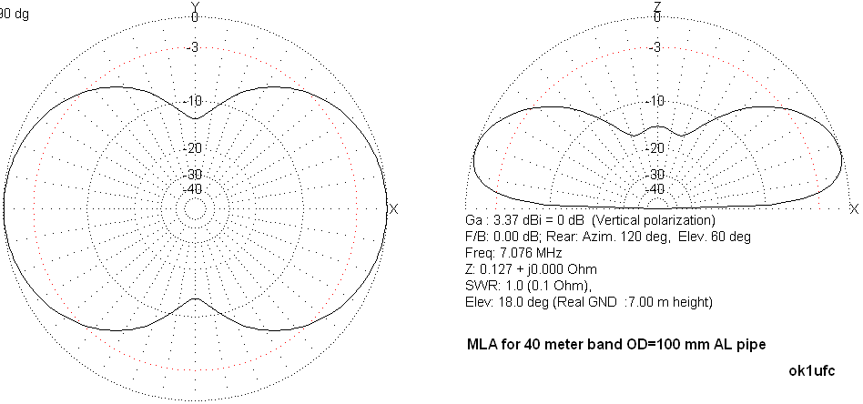 Pásmo 40 metrů je pro mě ideální, abych si v praxi ověřil, že jsem schopen zkonstruovat MLA smyčku obdobných parametrů, jako má dobrá vertikální anténa. Také, abych zjistil, že "match loss"ztráty nesmím podcenit. I když jsou far field diagramy stejné, je mezi anténami nepatrný rozdíl. Experimentální smyčka MLA 40 obřích rozměrů není v praxi lepší než OCF dipól. Možná je srovnatelná s vertikálem GAP Titan DX na tomto pásmu. Toto zevšeobecnění však neplatí pro pásmo 80 metrů a 160 metrů, kde nejsem s ohledem na rozměry a prostor schopen zkonstruovat anténu jinou a nezbývá mi tedy nic jiného, než vyřešit směrování, dálkové ovládání kapacit a maximálně účinnou transformaci napájení na nízkou impedanci smyčky.