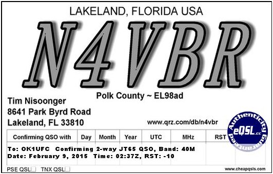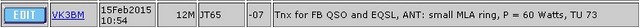 Spojení jsem rád potvrdil s hezkým reportem a stručnou informací o mé anténě: