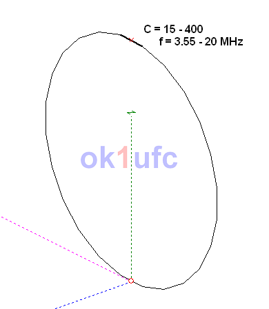 Jak nám tato smyčka vyzařuje? Jakou kapacitu musí mít kondenzátor pro rezonanci? Vše vypočteme hravě v programu MMANA. A rovněž prozkoumáme, jaký vliv má poloha napájecího bodu, poloha kondenzátoru, materiál trubek, jejich průměr a jakost Q použitého kondenzátoru.