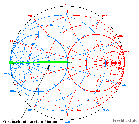 - impedanci 50 Ohmů nejprve transformuji na hodnotu 12.5 Ohmů. To je dáno "obřími rozměry" mých smyček