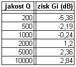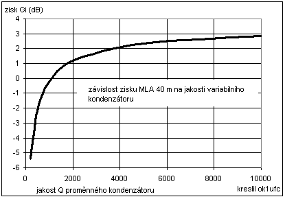 Bohužel, zásadní. Proto zapomeňte na některé improvizace. Dielektrikum musí být vzduch nebo vakuum. Zapomeňte na jakékoliv dielektrikum. Uvažoval jsem o vzduchovém kondenzátoru, který pracoval spolu se servomotorem v transformátorovém oleji. Dielektrická pevnost suchého vzduchu je maximálně 3 kV/mm. Kondenzátor v oleji by měl průraz při cca 10 až 12 kV. Bohužel, transformátorový olej způsobí snížení jakosti Q a anténa bude pracovat s vysokými ztrátami. Při pokusu je zjistíte např. citlivou termokamerou. Obdobně zjistíte ztráty v třecím kontaktu otočného kondenzátoru. Takže ze vzduchových kondenzátorů přichází v úvahu bezkontaktní motýlek, vyleštěné  a zaoblené elektrody. Tak, jako to dělá např. MFJ ... V následující tabulce a v grafu uvádím závislost zisku uvedené antény na hodnotě jakosti Q kondenzátoru: