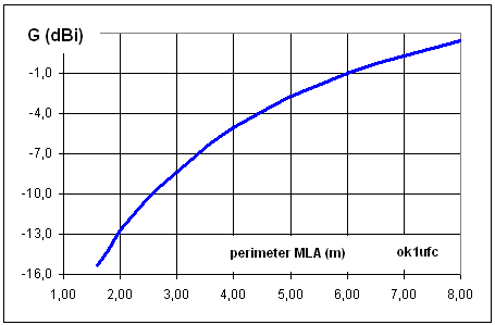 Všimněte si, že již nemáte magnetickou anténu. Vaše anténa vyzařuje sice s větším ziskem, ale směrem vzhůru. Pro provoz je nepoužitelná. Držme se tedy osvědčené rady, která nám říká, že MLA anténa bude mít dobré parametry při délce kolem 0.2 lambda. Při malých délkách bude mít mizernou účinnost, při překročení kritické délky již nebude řádně fungovat.
