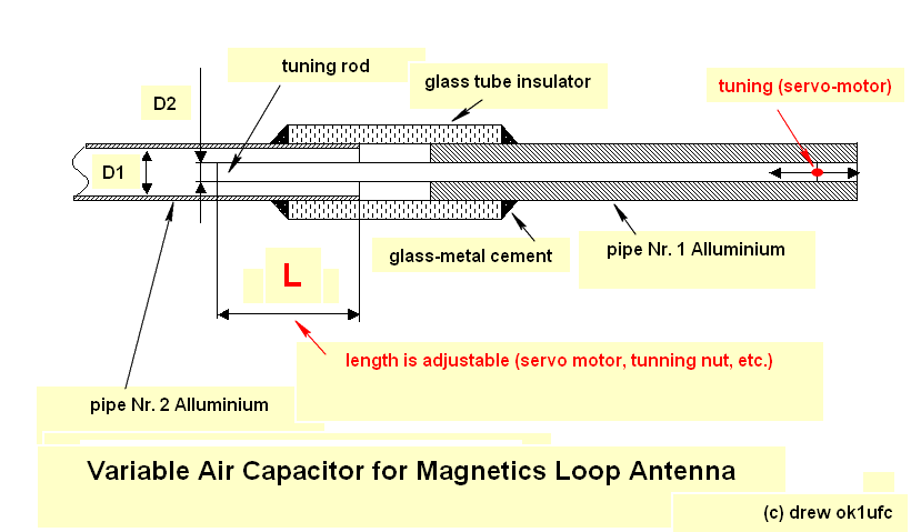 Princip je jednoduchý - ladicí tyč (trubka) se zasouvá do ramene vodiče magnetické antény. Zasouvá ji servomotor, který točí se šroubem a v trubce je matice. Dielektrikem je vzduch, připravena je pro zkoušku rovněž varianta s SF6 a hermetické provedení.