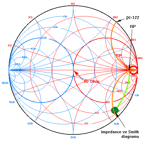 a -122 Ohmů. A připsal jsem do obrázku, kde se čtou hodnoty reaktancí