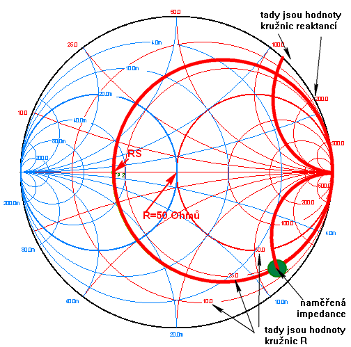 reaktanci (indukčnost nebo kapacitu). Bod ve Smithově diagramu musí být u