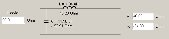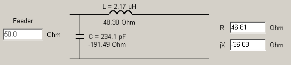 vypočteno: Z=47-j36, VSWR=2.08 |