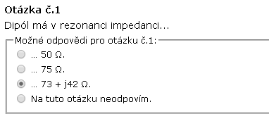 Všeobecně Kde tedy dipól rezonuje? Tento "dotěrný" dotaz mi přišel mailem od známého hama, těsně po okamžiku, co jsem zveřejnil článek na téma, zda dipól zkracovat či nezkracovat. Odpověď je velice jednoduchá, ale pro mě se stala ta otázka tématem, jak rezonanci vysvětlit jednoduchými úvahami a výpočty si zjednodušit nějakým pro hamy dostupným programem. Rezonance Rezonance je snaha fyzikálního objektu kmitat na větší amplitudě více při určitých frekvencích než na ostatních. Tyto frekvence jsou nazývané jako rezonanční frekvence. Předpokládejme tedy, že na kmitající dipólové anténě naměříme větší amplitudu proudu uprostřed zářiče nebo větší napětí na jeho koncích. Podíváme-li se do literatury nebo na dobrý web, který problematiku vysvětluje (např.:http://www.urel.feec.vutbr.cz/~raida/multimedia/index.php), zjistíme, jak to je. V testu na stránce: http://www.urel.feec.vutbr.cz/~raida/multimedia/index.php?nav=10-2-F si pak můžeme snadno ověřit naše znalosti. Testová otázka vypadá takto: