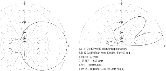 dosáhnout. Začneme u samostatných antén. Anténa pro pásmo 17 metrů, když je na stožáru sama, vyzařuje takto
