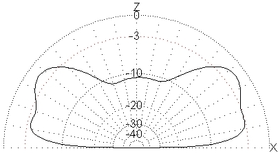 Na webu jsem publikoval několik článků, ve kterých jsem jako kritérium uváděl požadavek na nízký vyzařovací úhel. A u antém jsem zdůrazňoval tuto oblast charakteristiky - viz oválek na obrázku vlevo (ukázka, že vertikál vyzařuje na malých úhlech lépe, než dipól nízko) a velice varovně jsem zdvihal prst nad prohřešky směrovosti antén, viz vyzařování GP na výškové budově: