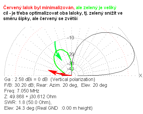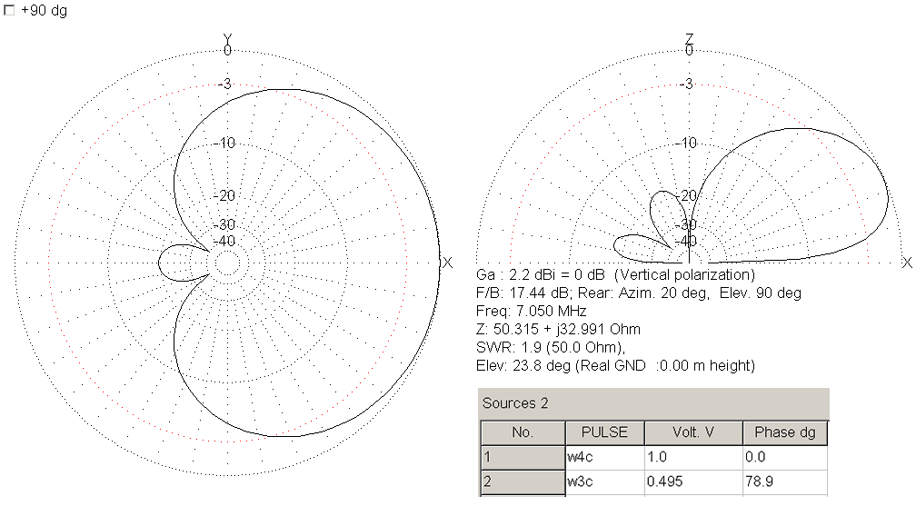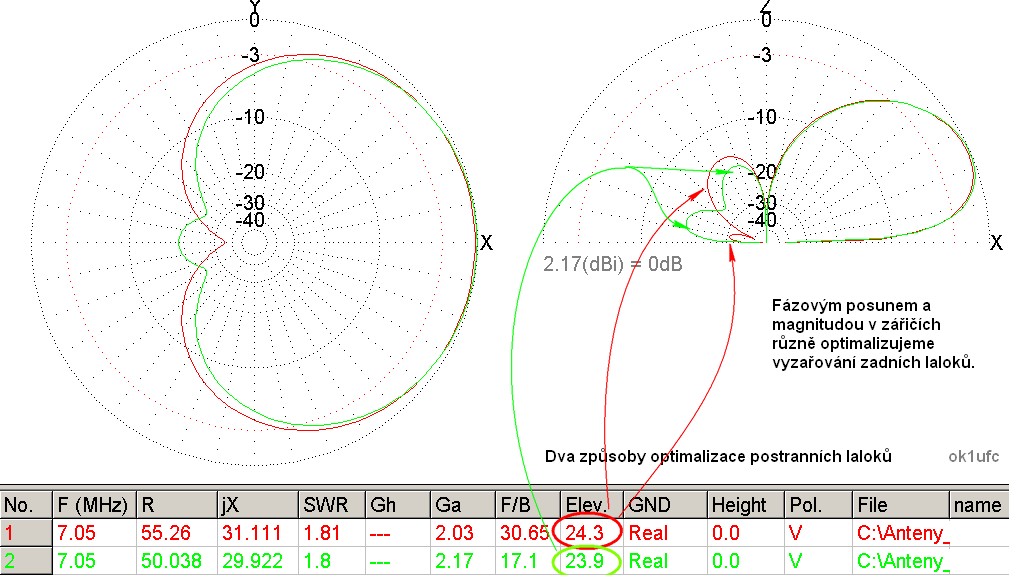 fáze a magnitudy jsou nastaveny tak, aby byl nejlepší F/B na nízkých