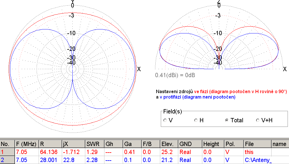 nebo v opačné fázi (posun 180°), změní se podstatně vyzařovací diagramy i