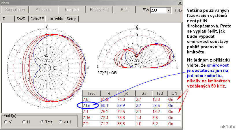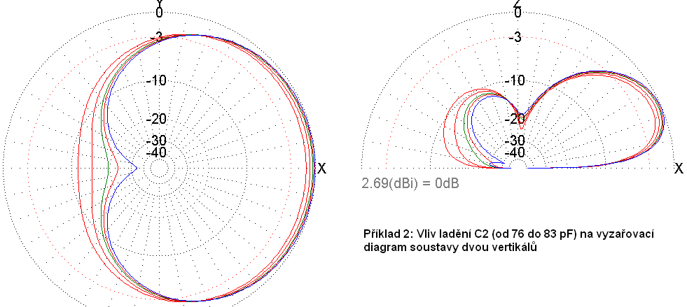 2. Navržený způsob fázování vertikálů je úzkopásmový. Důsledek - vyzařování soustavy lze optimalizovat jen poblíž jednoho pracovního kmitočtu na pásmu.