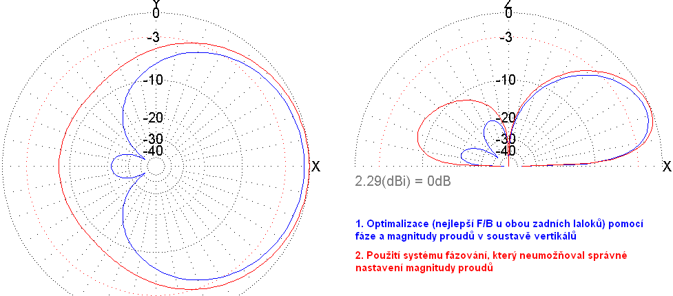 1. Nemáme možnost správně nastavit fázi a magnitudu proudů ve vertikálech. Tato skutečnost zásadním způsobem ovlivňuje dosažený výsledek - směrovost soustavy. Důsledek - vyzařování soustavy nelze optimalizovat.