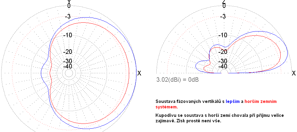 Pro ucelení představy - vyzařování soustavy s horším a lepším systémem radiálů, u každého vertikálu je stejná zem.