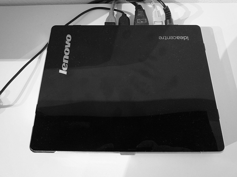 minipočítač Lenovo - foto vpravo. Původně běžel pod Windows 10,