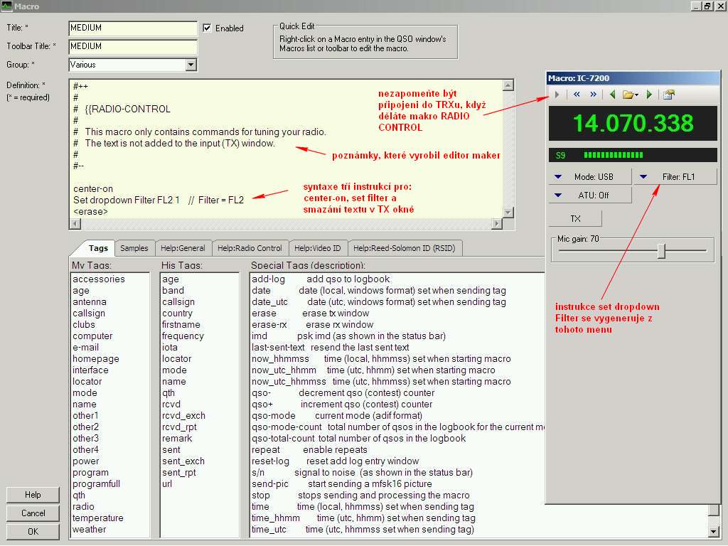 modulační vstupy, atd. Příklady maker uvádím v další kapitole pro Icom i