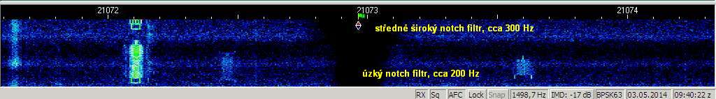 DSP filtry, zleva doprava úzký (200 nebo 250 Hz), střední (500 Hz) a