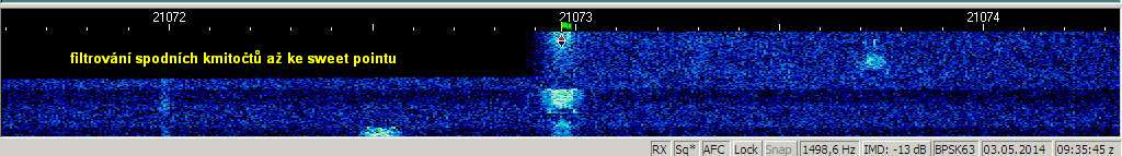 pak jsem to vrátil o 50 Hz nahoru zpátky. Ve spektru zůstala jen přijímaná