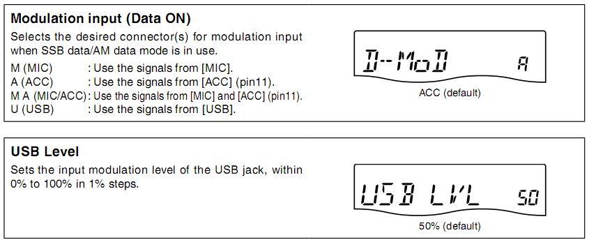 zapnutí noise blankeru, zapnutí modulace z USB rozhraní a nastavení