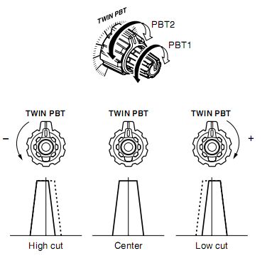 otočením doleva jednoho z knoflíků PBT rušivou stanici vpravo ve spektru.