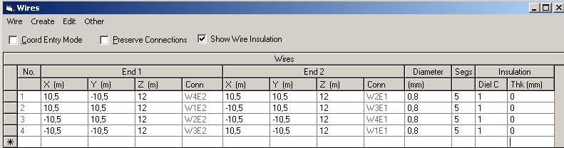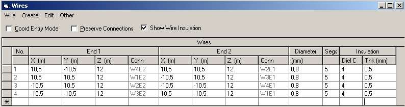 zářičem je izolovaný měděný drát, izolace PVC, relativní permitivita (diel. konst. = 4), tloušťka = 0.5 mm: