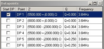 Uvažujme, že zářič antény má v místě napájení impedance od 5500 Ohmů do 8000 Ohmů. Pokud je zářič skutečně půlvlnný a v rezonanci, pak v tabulce vpravo jsou body DP1 a DP2 krajní body uvažovaného intervalu. Pokud k anténě můžeme, dokážeme ji budit volnou vazbou a měřit proud v zářiči (sondou) nebo naladit její rezonanci pomocí GDO, zpravidla docílíme toho, že zářič bude mít impedanci někde mezi DP1 a DP2. Pokud rezonanci zářiče nenajdeme, bude se nám anténa chovat při napájení jako kapacita (např. body DP3 nebo DP5), a to v případě, že je anténa krátká nebo se bude anténa chovat jako indukčnost (např. body DP4 a DP6), a to v případě, že je anténa dlouhá.