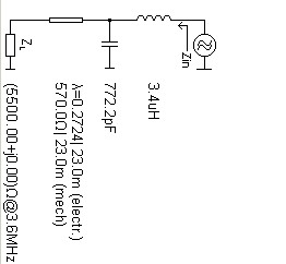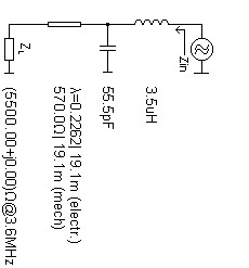 Všimněte si, že schéma tuneru je stále stejné (L článek typu dolní propust, generátor je vpravo). Potřebná indukčnost L má podobnou hodnotu, jako v předchozím případě (3.5 mikroH). Potřebná kapacita C je však 55.5 pF ! A to je hodnota realizovatelná na většině vestavěných tunerech, případně na manuálně laděných tunerech.