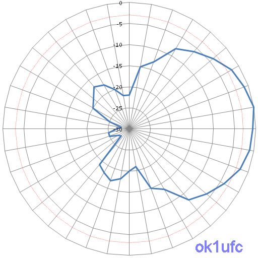 Vyzařování změřené s krokem azinutu 10 stupňů:
