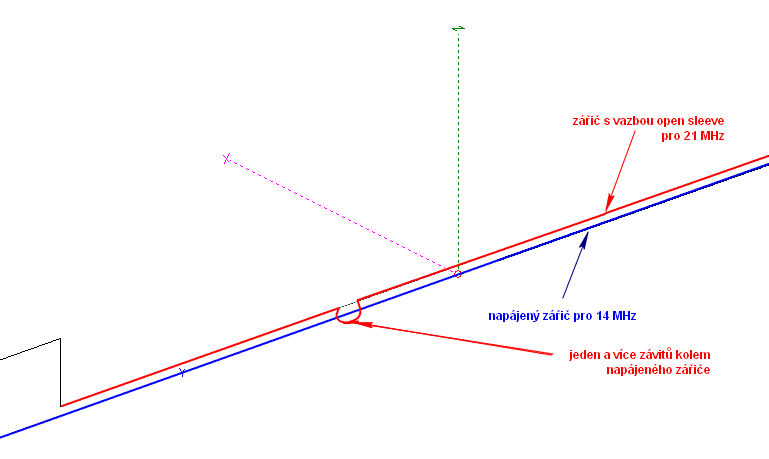 Horizontální dipól pro více pásem a jeho buzení open sleeve