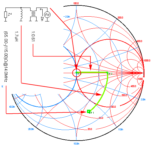 Jak to funguje, znázorňuje Smithův diagram. HF trafo