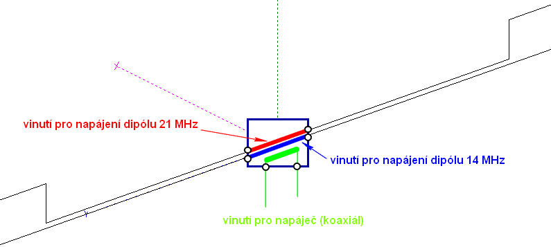 Schéma takto napájené antény je na tomto obrázku: