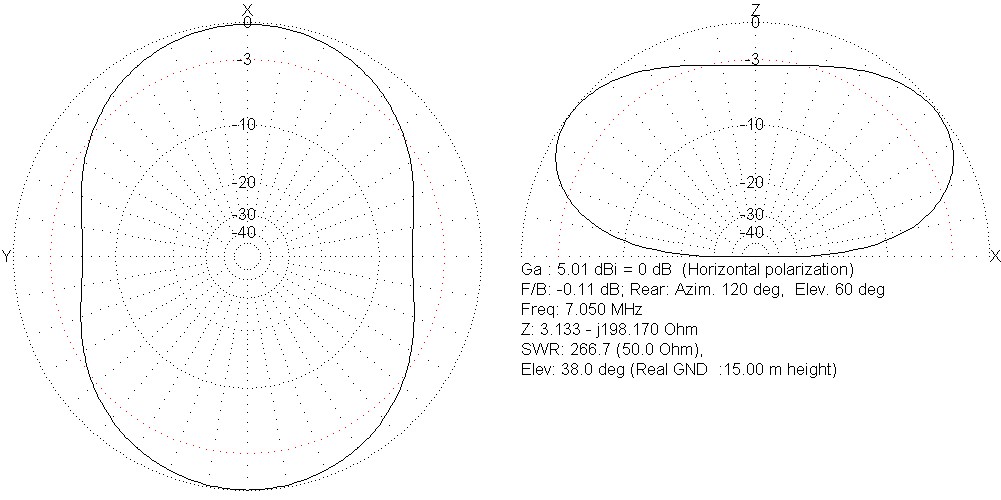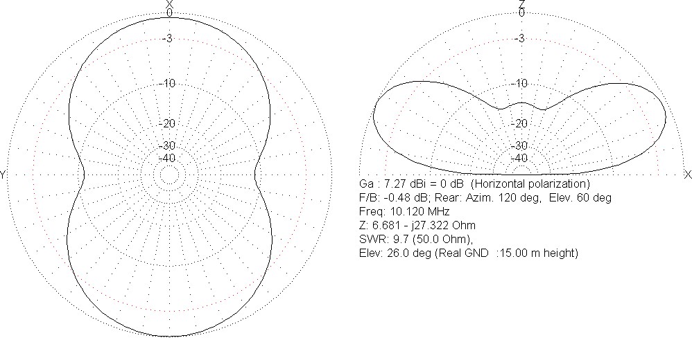 Vyzařování této antény jsem zatím nezměřil. Nepředpokládám, že bude významně odlišné od DK7ZB, který uvedl diagramy podle EZNEC modelu. Pro uvažovanou výšku instalace v H=15 metrů uvádím modelované vyzařovací diagramy pro pásma od 10 do 20 metrů zde: