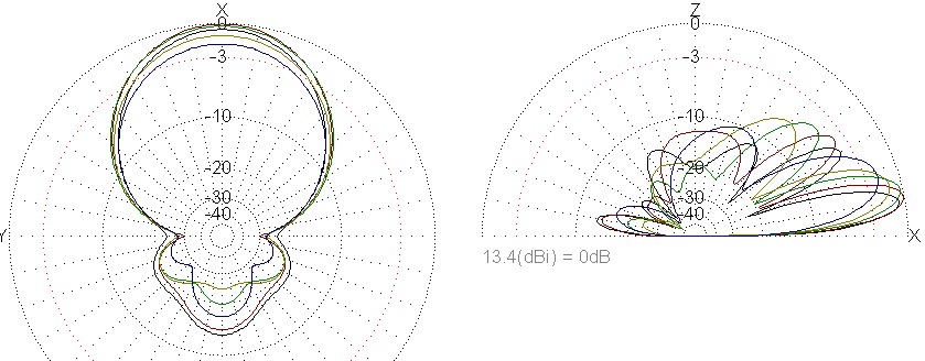 Schéma celého quadu je zde, za zářičem je vidět 5 reflektorů, na obrázku vpravo je bokorys antény: