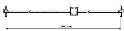 Maximální délka ráhna je asi 2 300 mm, rozteč mezi osami vnějších vzpěr je 2 200 mm: