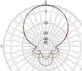 To, že se nám zhoršilo F/B si vysvětluji tím, že vyzařovací diagram viz předchozí diagram se třemi čárami má již vzadu lalůčky. Diagramu to odpovídá.