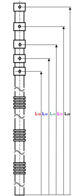 Ladicí tyče jsou umístěny na smyčkách v kmitnách napětí, na rozpěrách v izolátorech. Další ilustrační obrázek je tady: