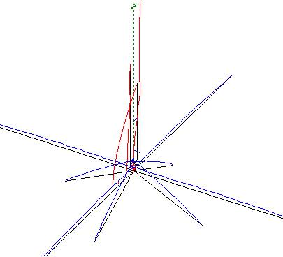 27° a zisk Ga = - 1.67 dB Porovnání OMTA antény se čtvrtvlnými vertikály Původně jsem OMTA anténám nevěnoval příliš mnoho zájmu. Nicméně, mojí pozornost upoutalo poměrně značné rozšíření antén GAP Titan DX, na které jsem slyšel poměrně dobré reference a dále několik publikovaných konstrukcí těchto antén, např: http://www.arrl.org/files/file/Technology/tis/info/pdf/9510032.pdf; bohužel, autorská práva na tento článek má ARRL, kterou jsem nežádal o souhlas s publikováním, tak si zde dovolím uvést pouze odkaz, u kterého jsem ověřil, že teď, kdy píšu tento článek, je fungující. Další z publikovaných materiálů nezaujal pouze mne, ale např. i autory programu MMANA-GAL, kteří dali mezi modely antén velice jednoduché modely firmy Hy-Gain. Tato anténa mě zaujala svým precizním a čistým exaktním návrhem, kde konstruktér dokázal optimalizovat s použitím kapacitních klobouků rozměry, šířku pásma a zisk antény. Musím přiznat, že to je opravdu mistrovská práce. Experimenty pro srovnání jsem prováděl s jednodušší, ale o něco rozměrnější anténou pro jedno pásmo. Popis a foto je zde. Tato anténa se pak stala výchozím bodem pro navrženou pětipásmovou anténu pro pásma od 20 do 10 metrů, jejíž schéma je zde vlevo. Anténa byla srovnána se čtvrtvlnným vertikálem, stejnou anténou, která byla použita pro zkoumání vlivu radiálů, obrázek vpravo: